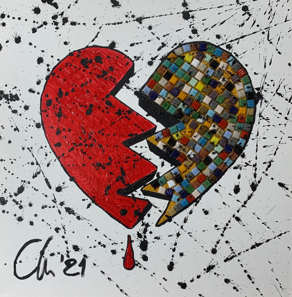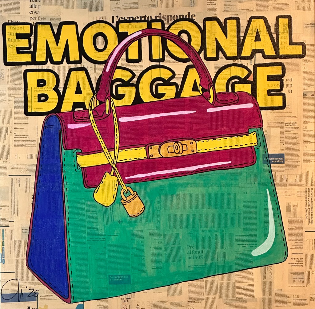 HANDLE WITH CARE 100×100 tecnica mista carta su tela/acrilico
