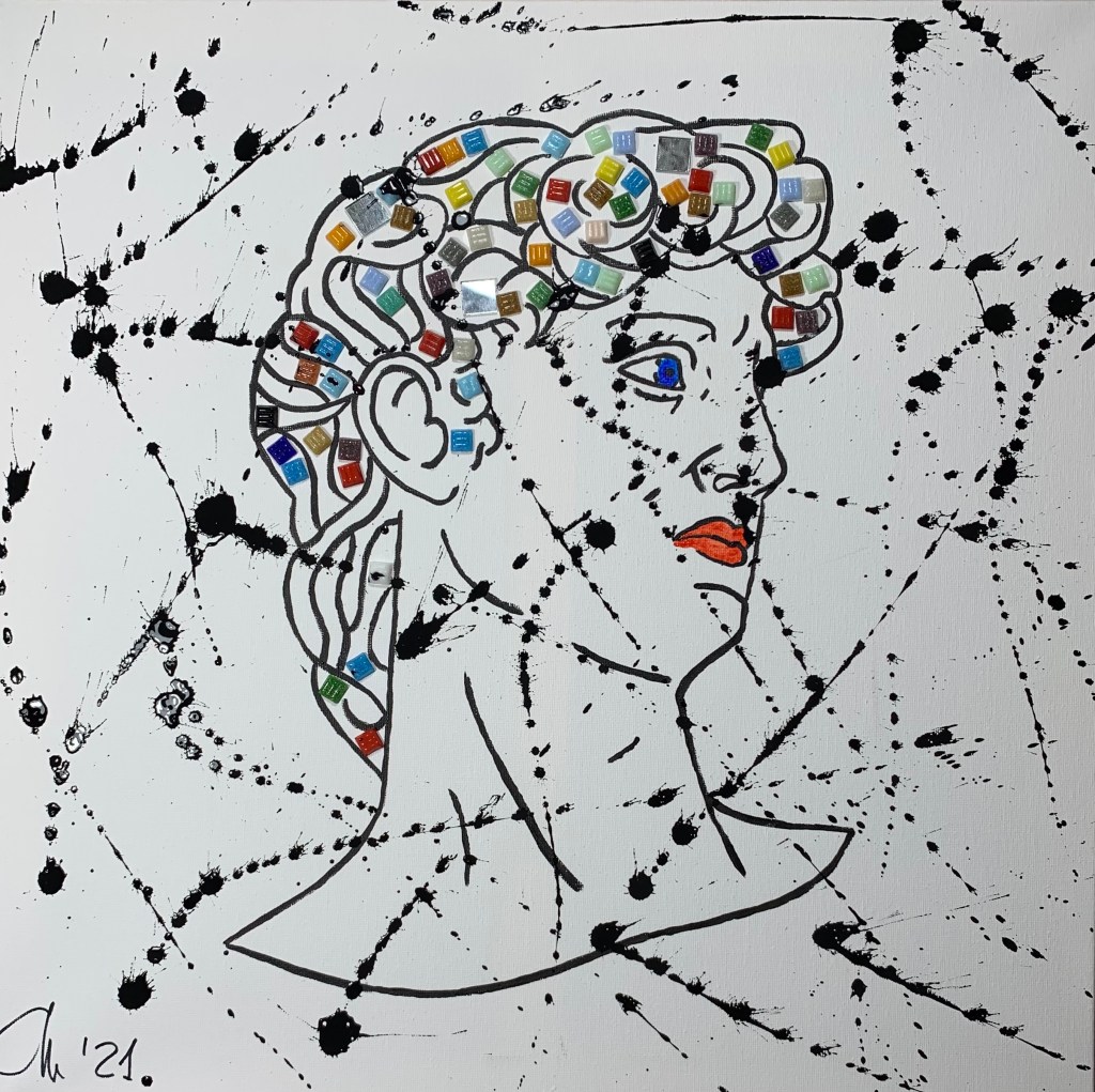 “ECCOMI” 50 x50 tecnica mista acrilico su tela/carta