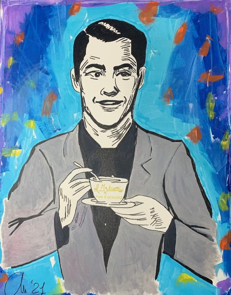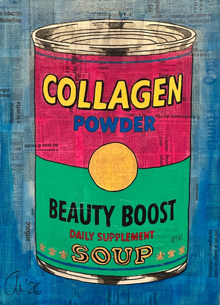 “WARHOL’S NEW DIET” 50×70 tecnica mista carta su tela/acrilico