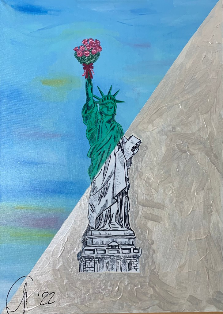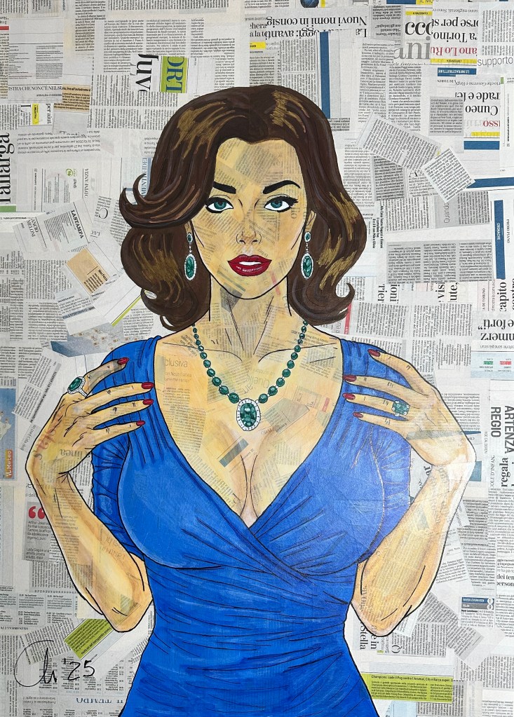 “THE EMERALD GIRL” 70×100 tecnica mista carta su tela/acrilico