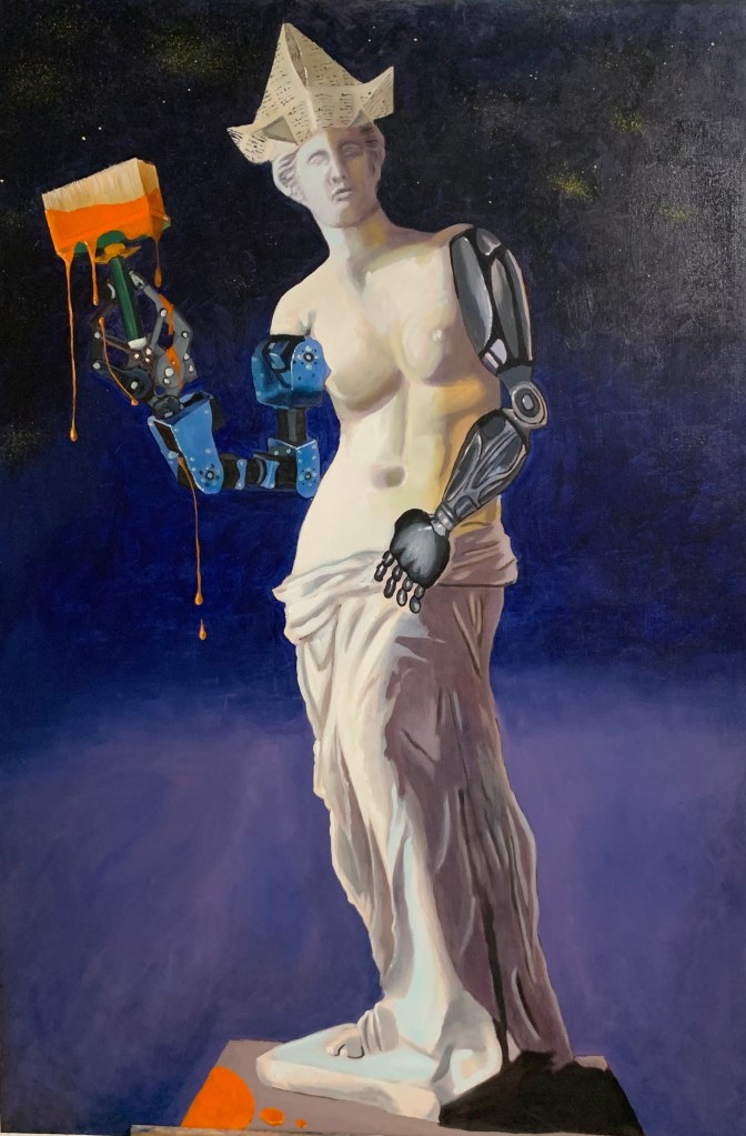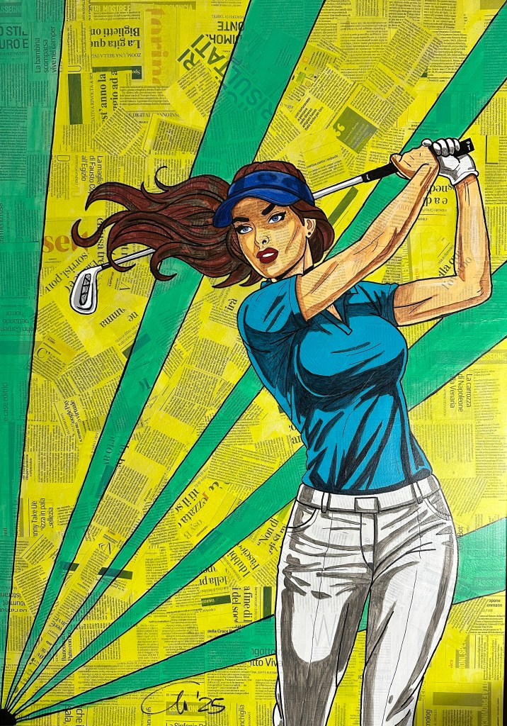 “THE MOST BEAUTIFUL GOLFER” 100×70 tecnica mista carta su tela/acrilico