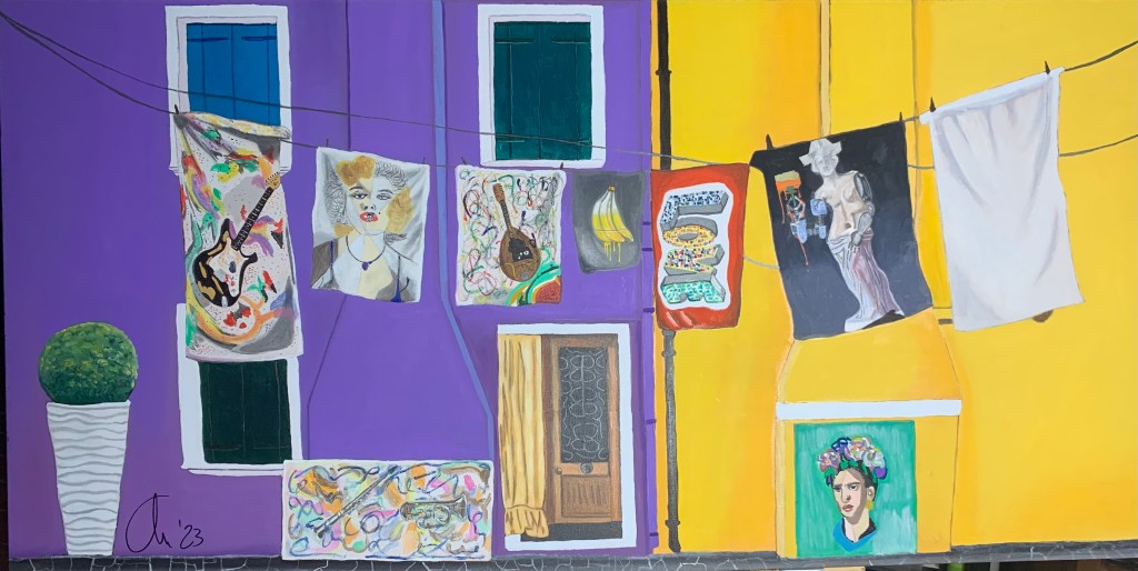 ” HIPPO-POP” 100×100 tecnica mista carta su tela/acrilico