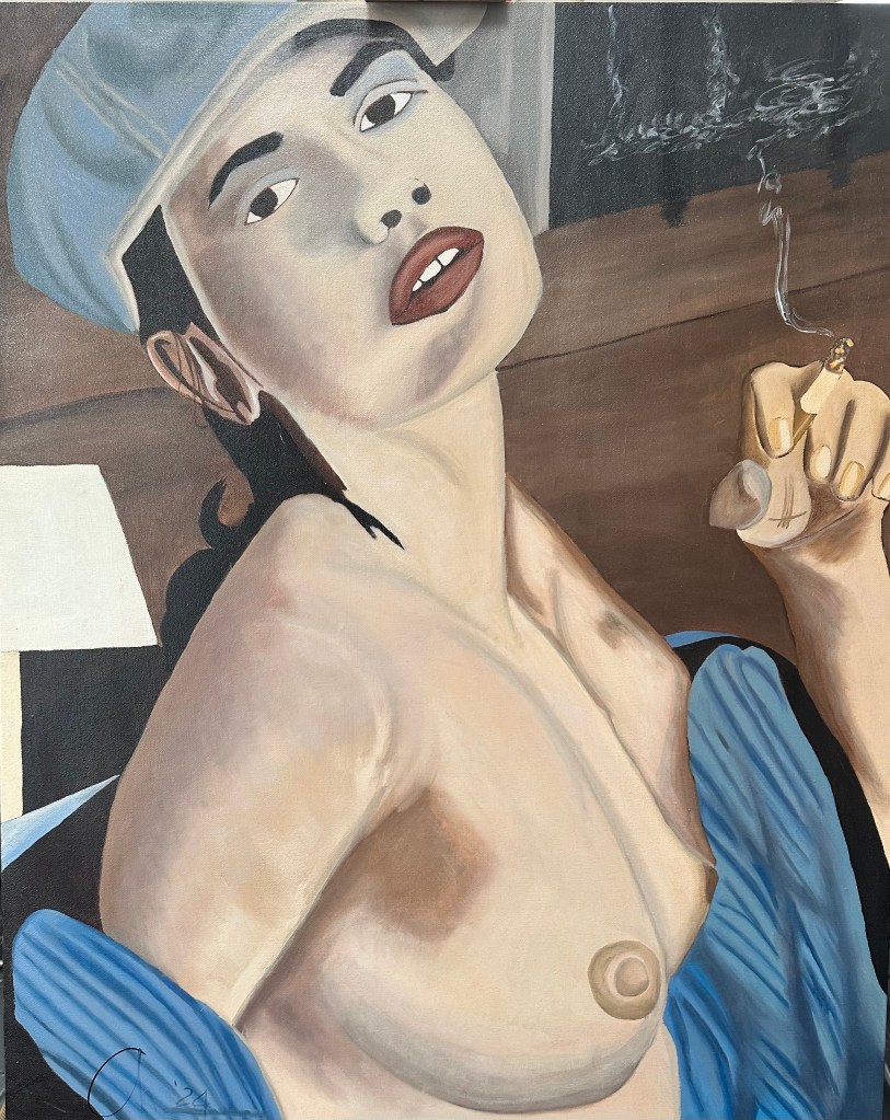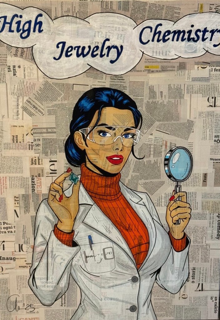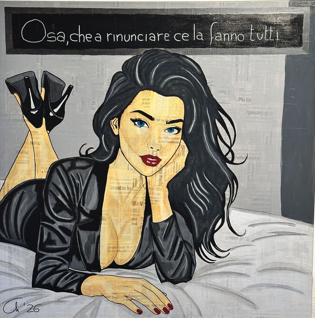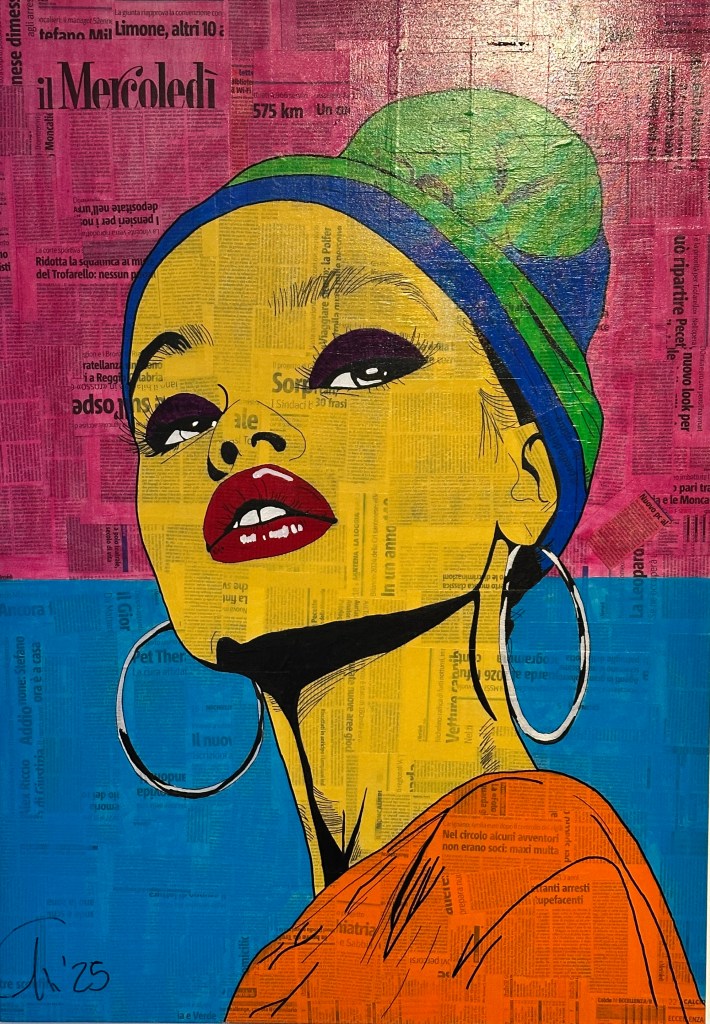“HAUTE JO” 100×70 tecnica mista carta su tela/acrilico