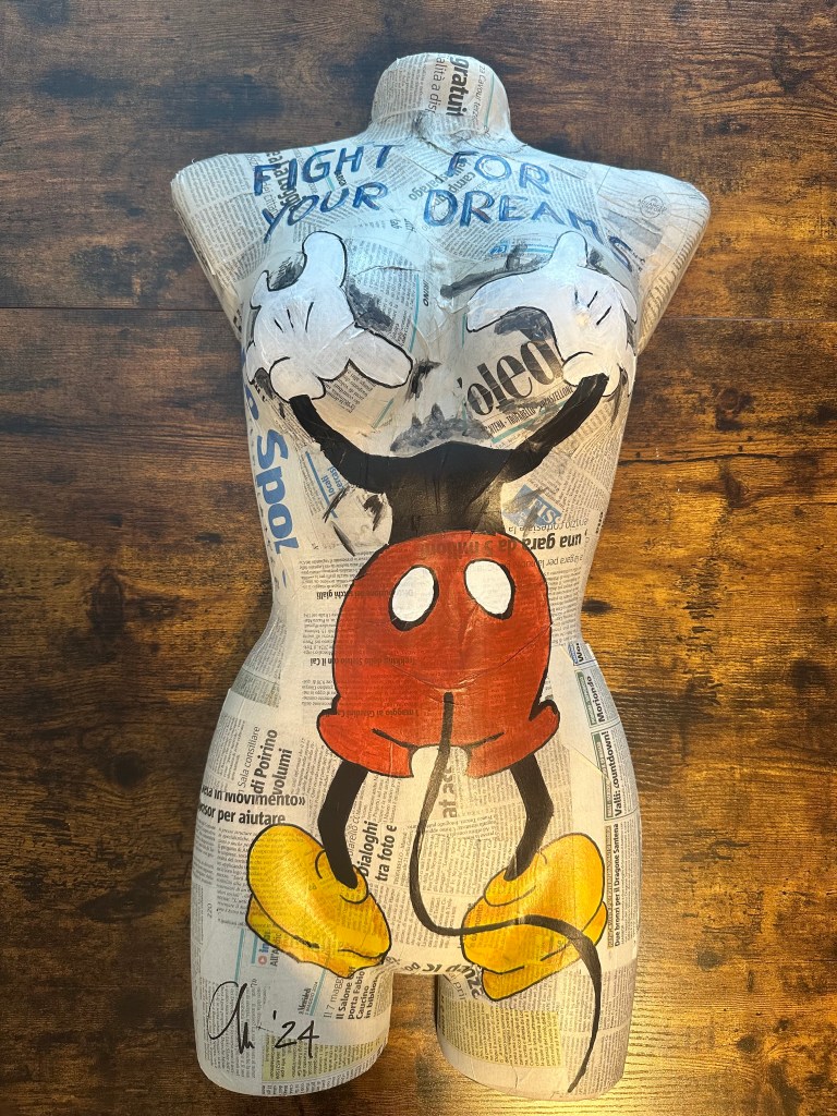 “fight for your dreams” tecnica mista carta/acrilico su manichino in plastica