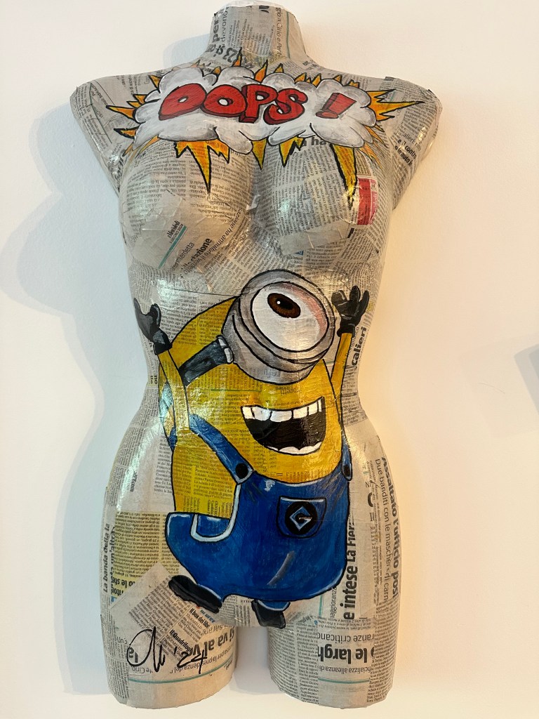“oops!” tecnica mista carta/acrilico su manichino in plastica
