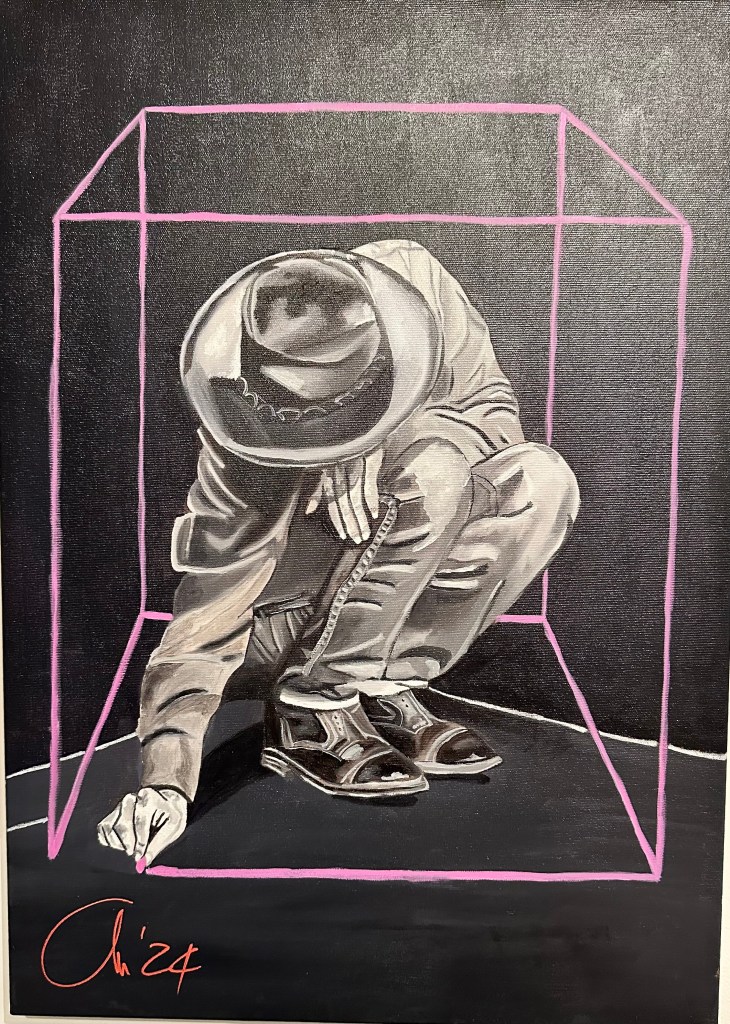 “LA REGOLA DEL CORAGGIO” 100×100 tecnica mista carta su tela/acrilico
