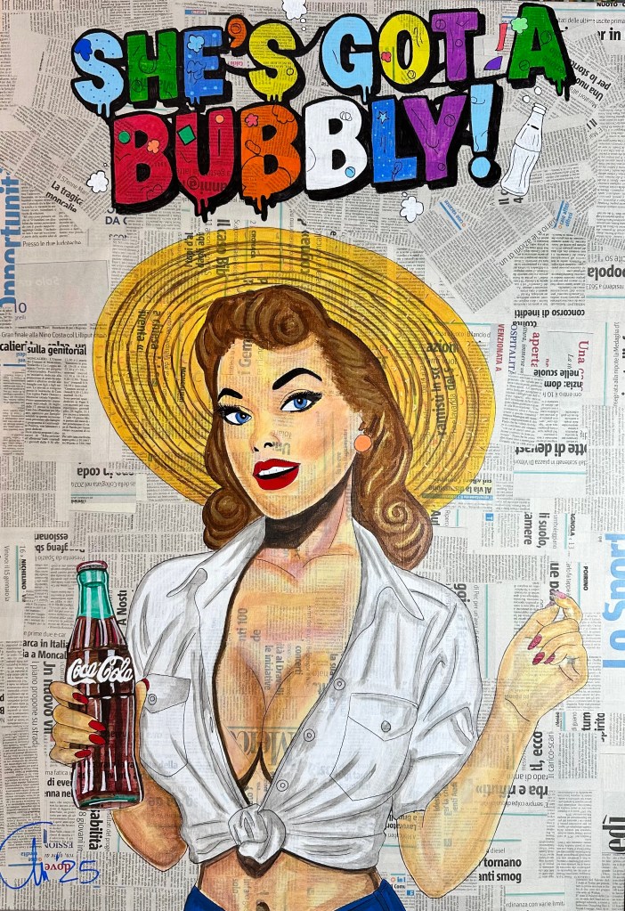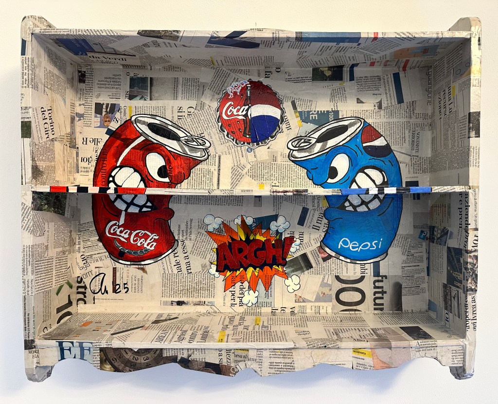 “LOOK AT THE COKE” 70×100 tecnica mista carta su tela/acrilico