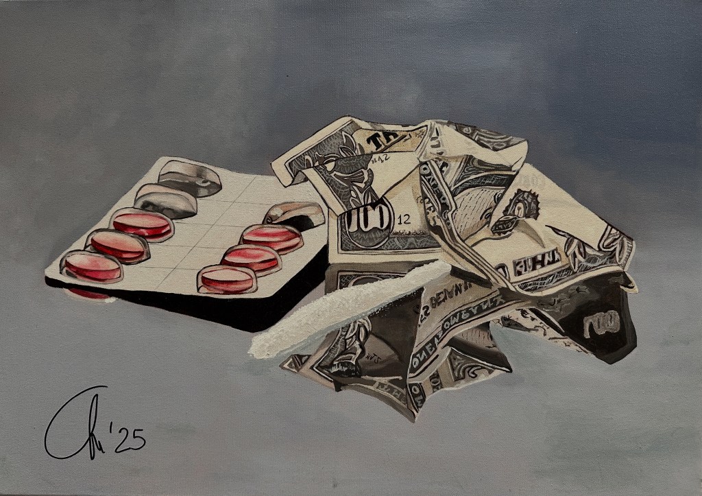 “MY ONLY PASSIONS” 50×70 tecnica mista carta su tela/acrilico