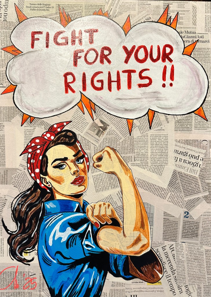 “FIGHT FOR YOOU RIGHTS” 50X70 tecnica mista carta su tela/acrilico