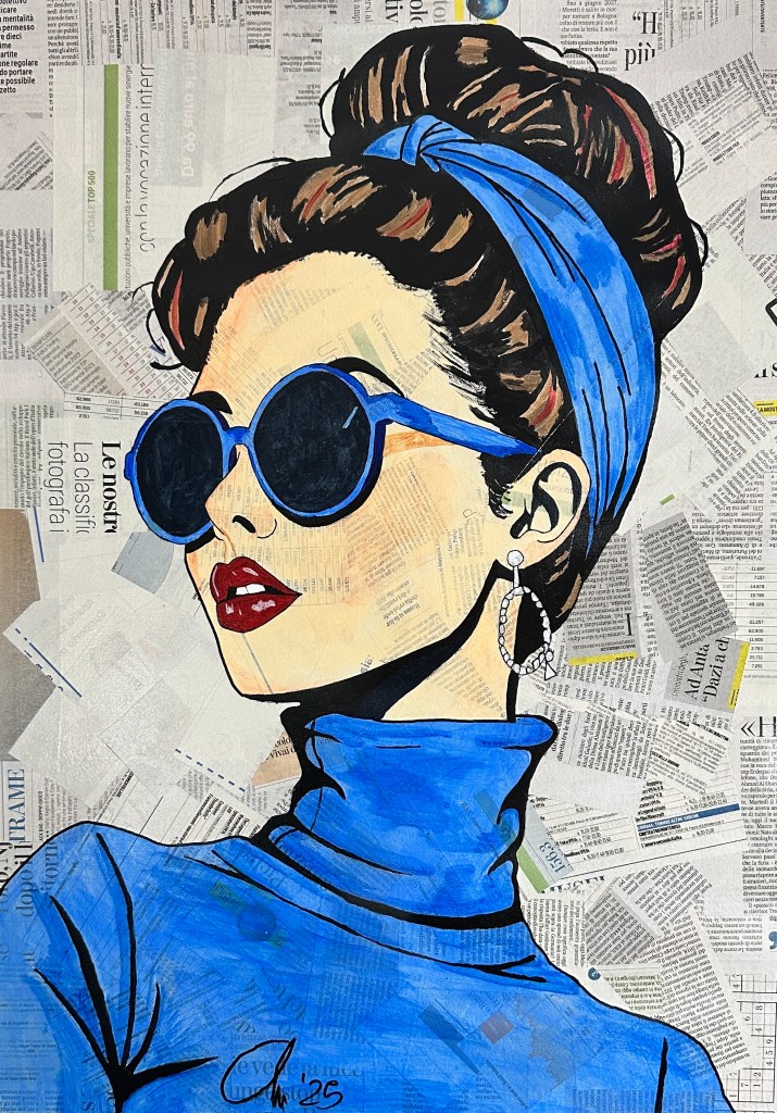 “WOMAN IN BLU” 50 x 70 carta su tela/acrilico
