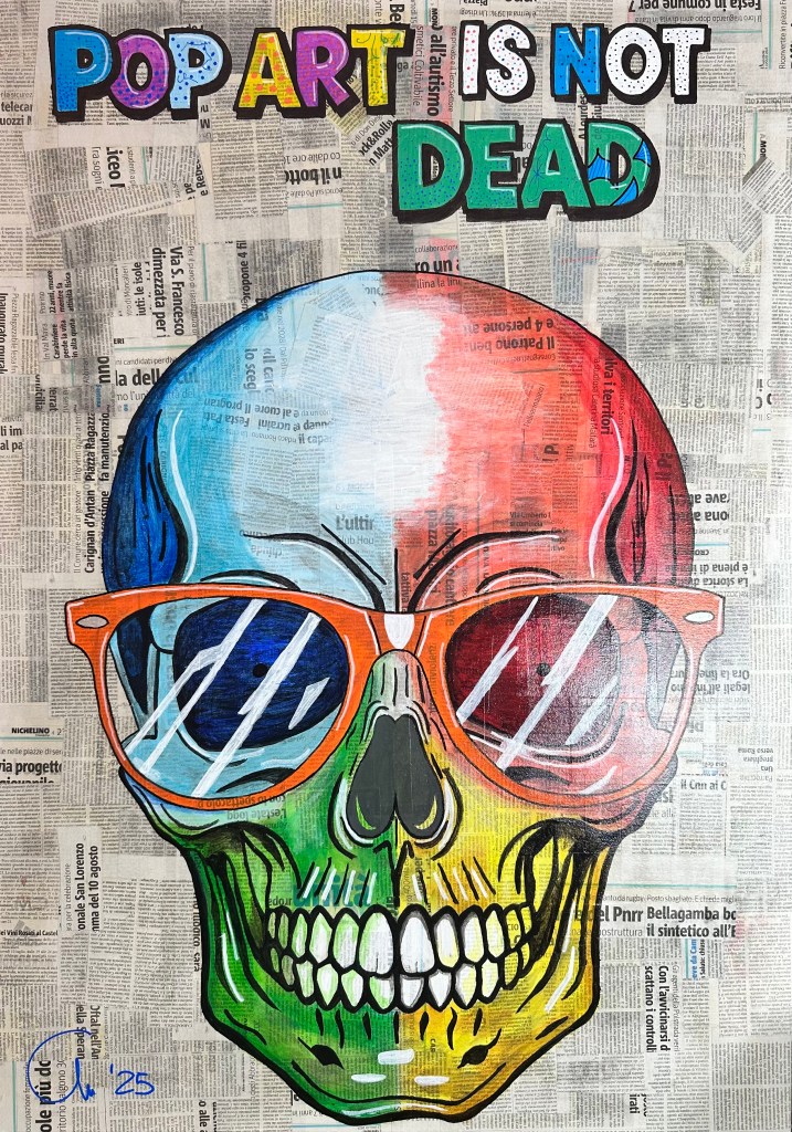 “POP ART IS NOT DEAD” 100×70 tecnica mista carta su tela/acrilico